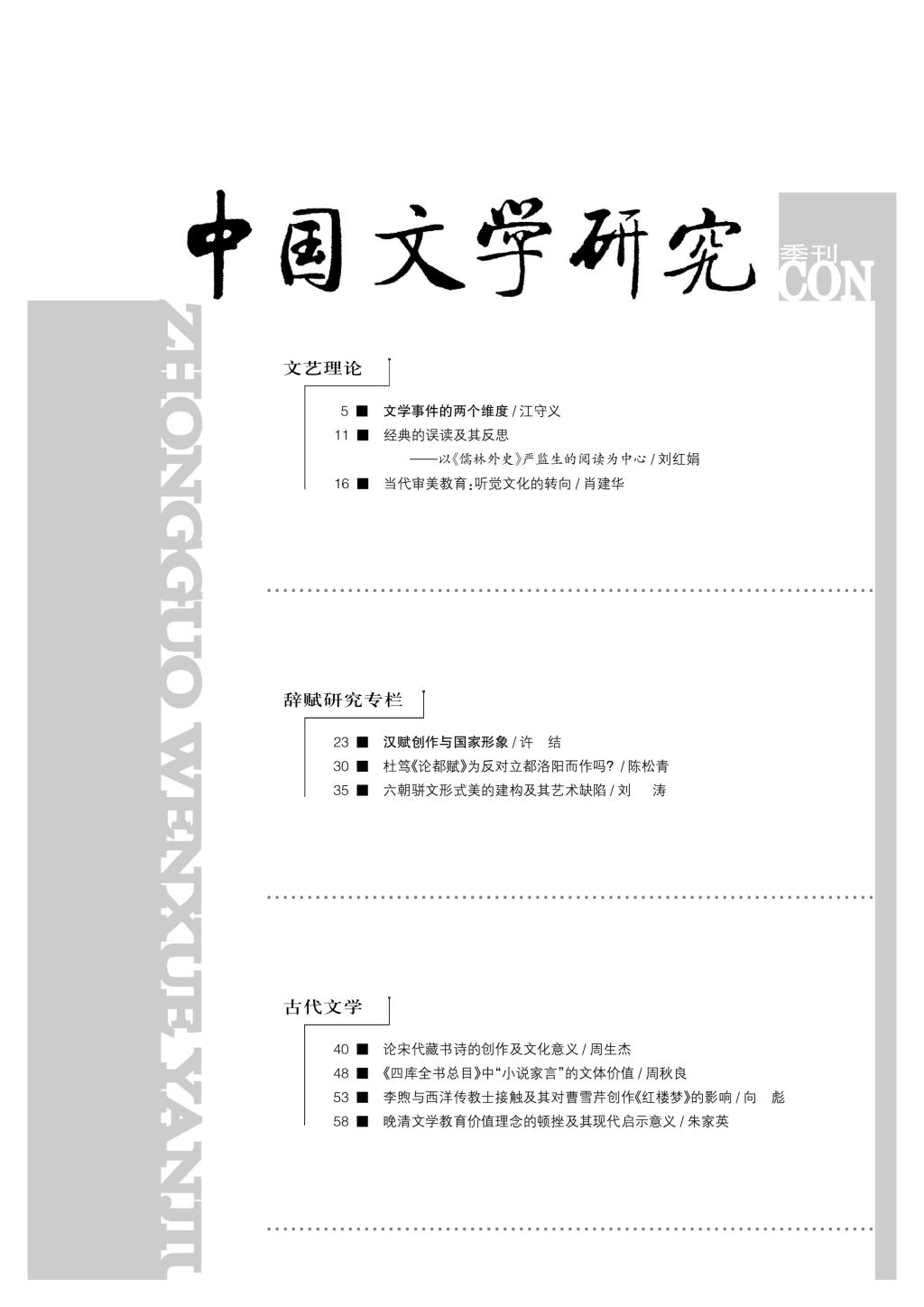 《中国文学研究》2018-1目录