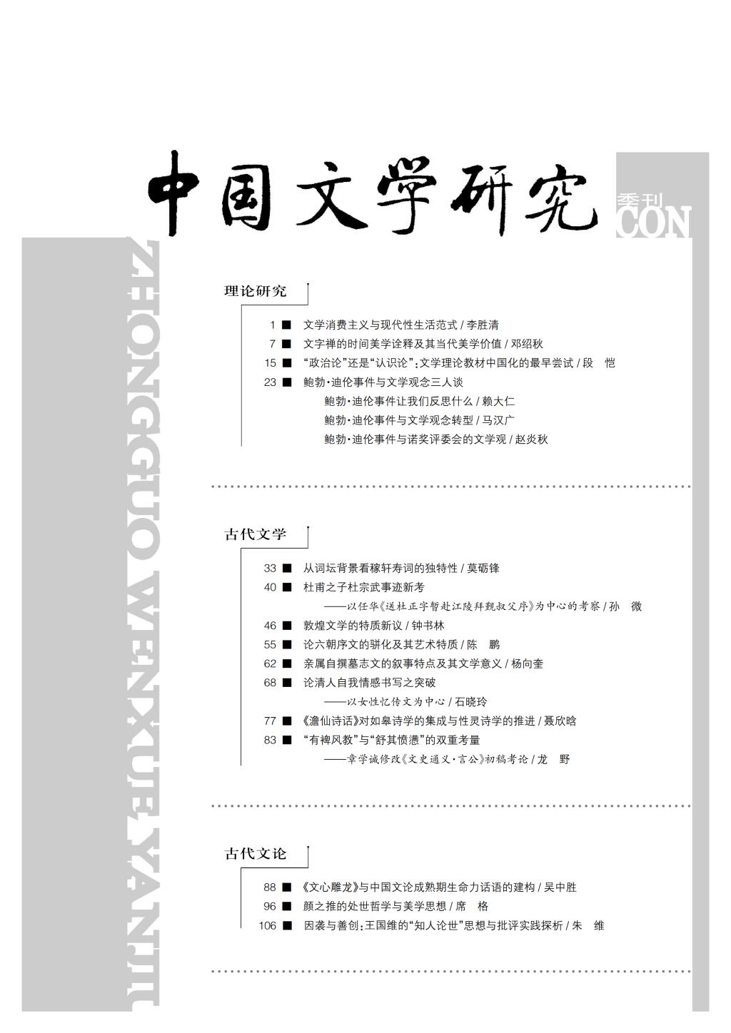 《中国文学研究》2018-1目录