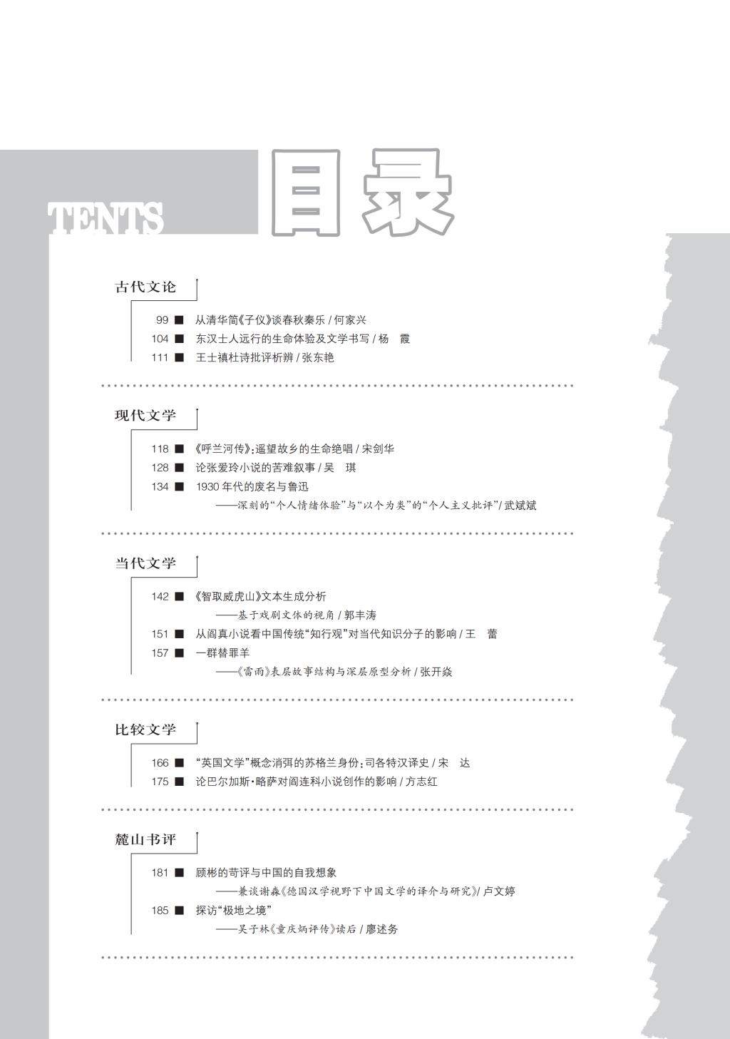 《中国文学研究》2018-3目录