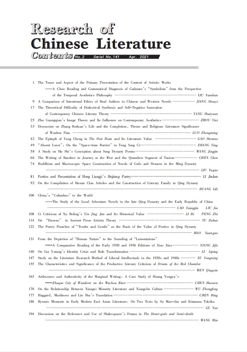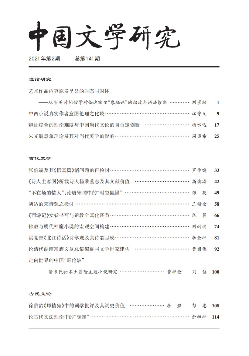 《中国文学研究》2021年第2期总第141期