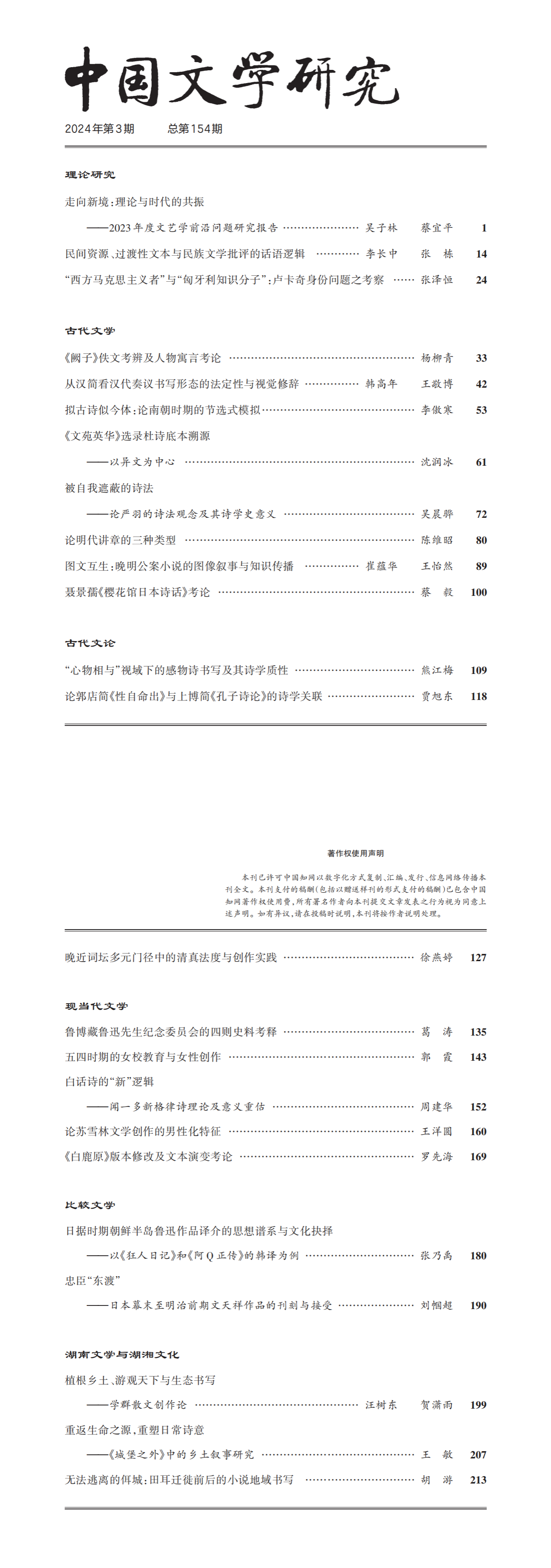 《中国文学研究》2024年第3期总第154期