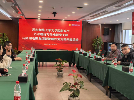(通讯员 杨岑)为深入贯彻新时代党建“双创”工作要求,进一步创新基层党组织建设载体,加强与优秀党组织之间的交流学习,以实现“优势互补、共建共赢”的党建协同发展格局。3月30日下午,湖南师范大学五月天精品综合阁研究生艺术理论写作戏影党支部与潇湘电影集团影视创作党支部以“探讨主流影片创作,传承党的精神”为主题,在潇湘电影集团电影展馆与会议室联合开展党建共建活动。双方党支部党员及代表共聚一堂,通过实地参观走访、访谈互动交流、签订党建合作共建意向书等环节,共同探索了“资源共享、活动共办”的党建融合联动新模式,为党员提供更丰富的交流机会,为区域党建和社会发展贡献更大力量。