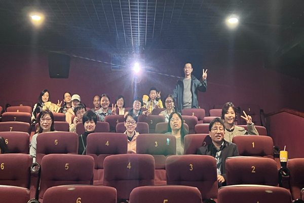 观影结束后,教职工们集体合影留念。