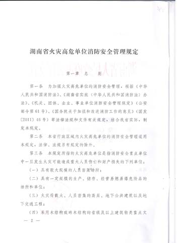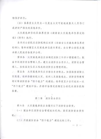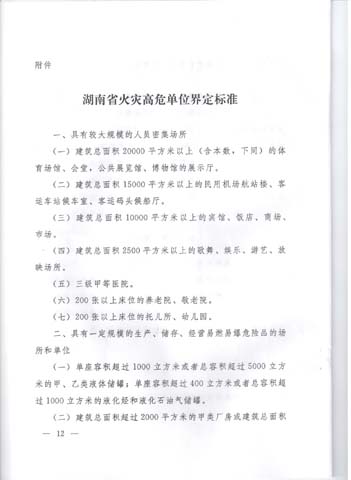 《湖南省火灾高危单位消防安全管理规定》