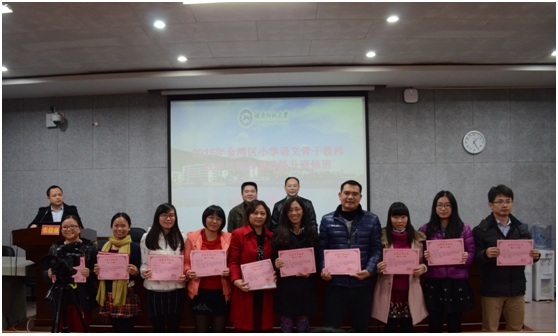 2015年11月13日下午,来自广东省珠海市金湾区各小学的50名小学语文老师,完成培训任务在五月天精品综合阁217学术报告厅举行结业典礼。本次研修班班长、金湾区三灶学区教研员白春生老师、湖南师范大学五月天精品综合阁党委书记李伶俐出席结业典礼。典礼由五月天精品综合阁成教办主任张德强主持。