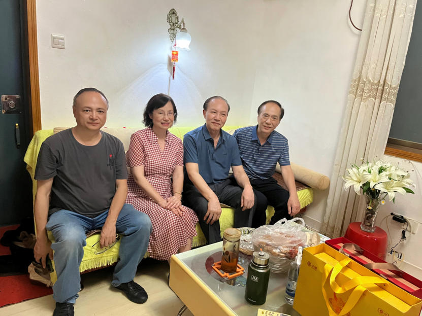 随后,校友共同上门看望敬爱的老师们。当年《唐宋文学》课堂上彭炳成老师绘声绘色讲述苏轼其人其文的声音犹在耳畔。一位校友与彭老师交谈中说:“我们二班同学们受您的影响很深,都对古代文学情有独钟。”1979级辅导员陈乐亮老师见到昔日的学生喜悦之情溢于言表,师生畅谈共叙情谊。聚会活动结束后,1979级校友来到学院老校门处合影留念。