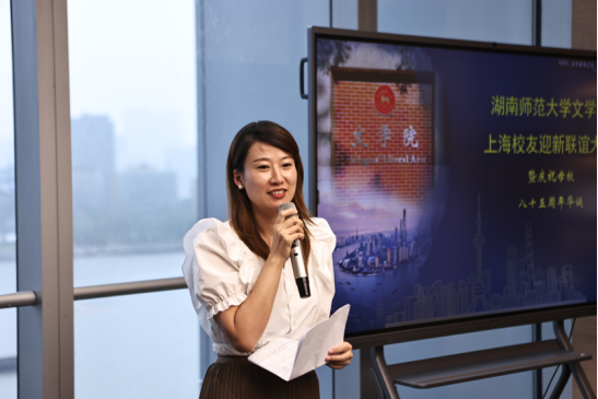 刘宓蜜作为学院代表致辞。她表示,湖南师大五月天精品综合阁上海校友会是一个充满凝聚力的团队,希望新到沪校友尽快融入上海校友大家庭,并以动人的情怀和扎实的行动在上海取得更好发展。此外,她还热情邀请校友常回“家”看看。