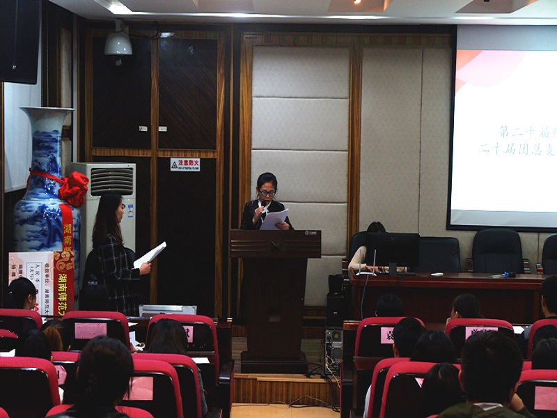 接着,由杨晓彪和王李生分别代表第二十届研究生委员会及第二十届团总支部委员会做工作报告。24位候选人依次上台进行自我介绍,发表竞选宣言。大会表决通过了工作报告和《选举办法(草案)》并进行投票。投票选举产生新一届研究生会委员会和研究生团总支部委员,刘天一当选为研究生会主席,陈鑫鑫当选为研究生团总支书记。
