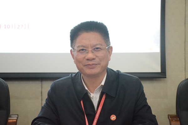 唐贤清致辞,他首先代表学校表达对唐湘晖的感谢,随后,他介绍了学校近几年翻天覆地的变化,诠释了“校友”二字的特殊意义。并鼓励、号召同学们,不忘雨露之情,努力学习,为校争光,回馈社会。