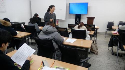 韩国圆光大学孔院中国老师寒假汉语集中训练班给学生上课