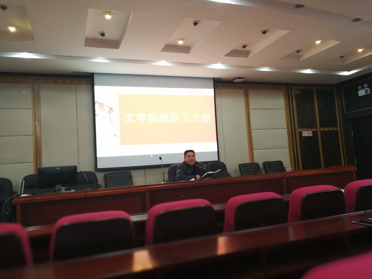 2018年元月18日下午,学院在216报告厅召开了全体教职工大会,大会由院党委书记李伶俐主持。