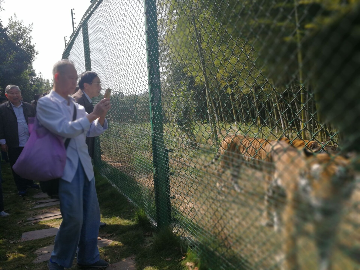 10月27日,五月天精品综合阁组织学院离退休老师到长沙县金井镇老虎园、茶香小镇一日游。图为五月天精品综合阁离退休老师在老虎园参观:
