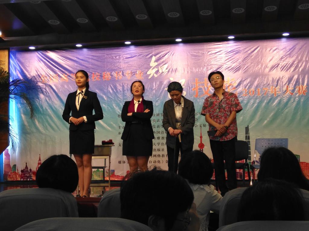 (通讯员 彭佳仪 邓卓扬)4月29日至4月30日,全国高等院校2017年秘书知识技能大赛在上海工商外国语学院举行。此次比赛由国家职业技能鉴定专家委员会秘书专业委员会指导,国家一级学会中国仪器仪表学会、办公自动化学会、文秘专业委员会主办。我校代表队获得团体一等奖、才艺展示特等奖、“十佳秘书”等14项大奖。