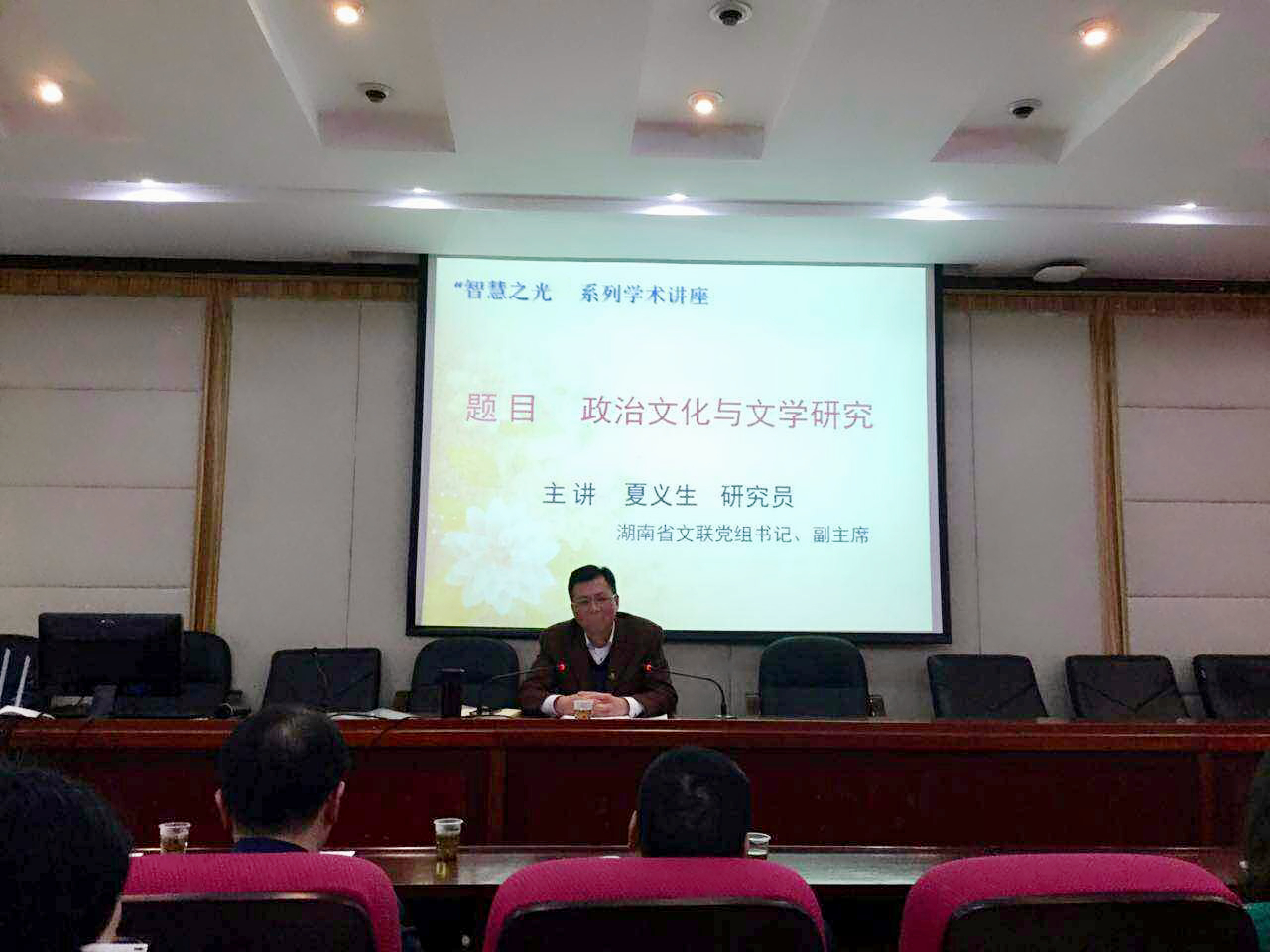 (通讯员段志苹谷琪琪)4月13日下午,五月天精品综合阁在216教室举办了“智慧之光”系列学术讲座,特邀湖南省文联党组书记、湖南省作协副主席夏义生,做了题为“政治文化与文学研究”的专题讲座。会议由赵树勤教授主持。