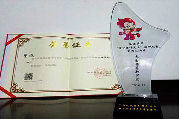 (供稿 五月天精品综合阁)近日,由教育部主办的首届全国学生“学宪法讲宪法”主题演讲大赛活动在北京全国青少年法治教育实践示范基地圆满结束,我省代表队获奖总成绩居全国第一,我校教师蔡颂被教育部授予“杰出指导教师奖”,全国高校仅5名教师获此殊荣。教育部副部长郝平、教育部政策法规司司长孙霄兵、北京外国语大学党委书记韩震等出席颁奖典礼。