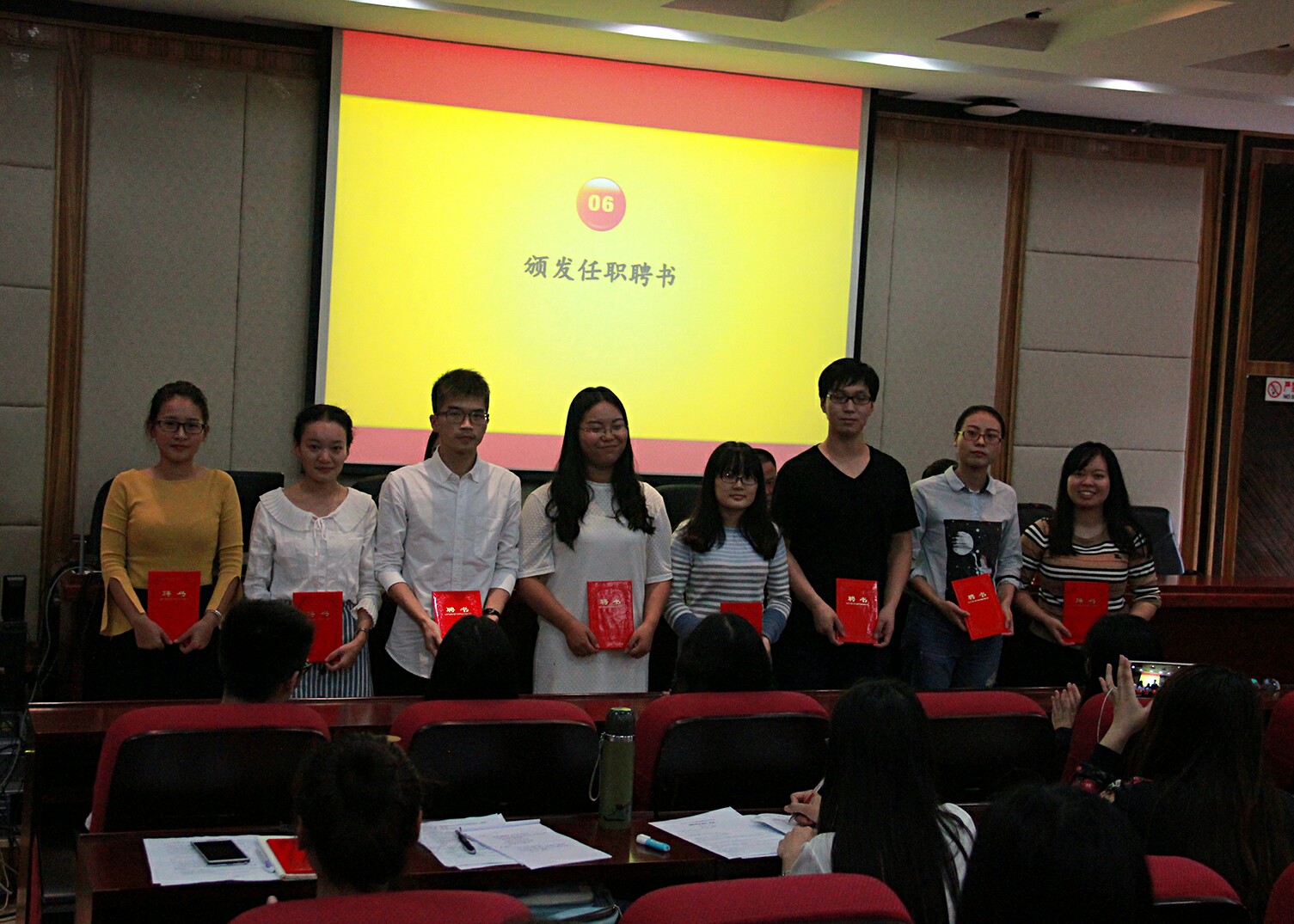 会议的最后,陈雅琪老师宣布第十九届研“两会”和16级研究生党支部任职名单,与会领导、老师为新一届学生干部颁发任职聘书。
