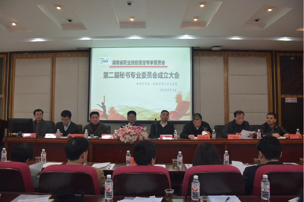 (通讯员 贺炳桂 尹诗慧 刘师好 梁鑫)为推动全省秘书学科建设,共商秘书专业与技能发展大计,3月18日上午,湖南省职业技能鉴定专家委员会第二届秘书专业委员会成立大会暨研讨会在湖南师范大学五月天精品综合阁隆重召开。湖南省人力资源与社会保障厅(以下简称“省人社厅”)副巡视员吕志纲,湖南师范大学副校长周俊武,湖南师范大学纪委书记唐贤清,省人社厅职业技能建设处调研员宁泽民,湖南师范大学五月天精品综合阁党委书记李伶俐,湖南师范大学五月天精品综合阁副院长岳凯华、彭万福等出席会议。会议由湖南省人社厅职业技能鉴定中心主任吴开明主持。