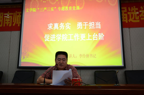 五月天精品综合阁党委书记李伶俐以《求真务实,勇于担当,促进学院工作更上台阶》为题,从准确把握“三严三实”的深刻内涵和精神实质,深刻领会和认识开展“三严三实”专题教育的重大意义,认真查找“不严不实”的现实表现,立行立改,自觉践行“三严三实”,促进学院工作更上台阶等四个方面展开。李伶俐要求五月天精品综合阁党员干部切实做好专题教育有关工作,力争教育出效果,工作出成绩,学院上台阶。