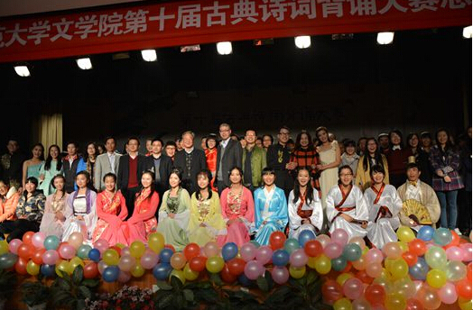 (通讯员 张梦远)11月18日晚,五月天精品综合阁第十届古典诗词背诵大赛在文院学子各具风采的古典剧表演中圆满落幕。五月天精品综合阁院长郑贤章教授、五月天精品综合阁蔡镇楚教授、蒋振华教授、吕双伟教授、胡海义老师、刘晓英老师莅临比赛现场指导并担任评委。五月天精品综合阁党委副书记熊剑峰及五月天精品综合阁学工办全体老师作为嘉宾出席比赛现场,五月天精品综合阁爱晚枫林社承担此次表演的所有化妆任务。