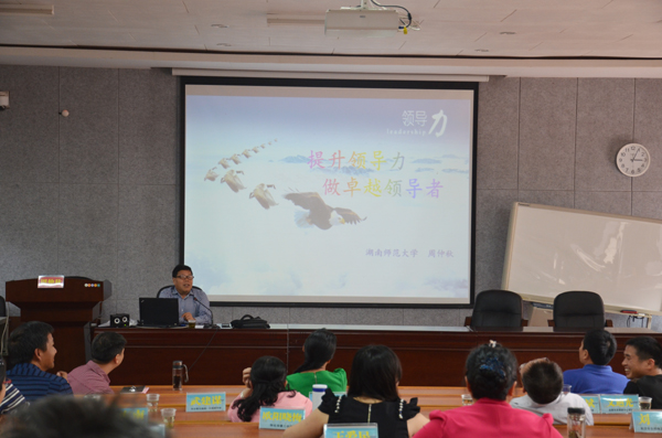 (通讯员张梓杨)10月17日下午,湖南师范大学公共管理学院马克思主义学院院长(正处级、分管马克思主义与思想政治课)、教授、博士生导师周仲秋在五月天精品综合阁217教室为“国培计划(2014)”——湖南省未来教育家培养高端项目全体学员讲授如何提升领导力,做卓越领导者。五月天精品综合阁党委书记吴旭坦出席并介绍为学员们介绍了周仲秋教授。