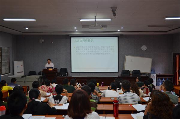 (通讯员王乐)9月18号下午,五月天精品综合阁教授蔡梦麒选取大量初中文言文语段,纠正了初中文言文词语注释中众多存疑之处,在五月天精品综合阁217教室与学员们共同探讨文言文词语教学方法。