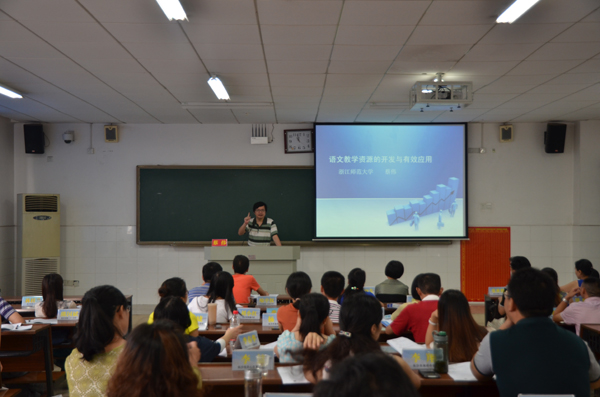 (通讯员颜颂娥记者刘雨溪)8月22日上午,“省培计划”湖南省高中语文骨干教师培训班在湖南师大至善楼211教室进行第二天培训。浙江师范大学教授蔡伟以《高中语文课程资源的开发与有效利用》为专题授课。