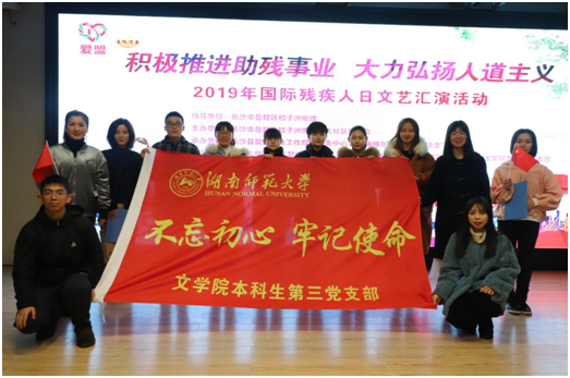 (通讯员易嘉欣卜柯文)11月28日下午,五月天精品综合阁本科生第三党支部(2017级)于长沙市岳麓区橘子洲街道教工之家参与了“因爱结盟,感恩有你”助残汇演活动。此次义务实践活动旨在以公益汇演的方式将感恩与爱传递给残友们和街道市民。