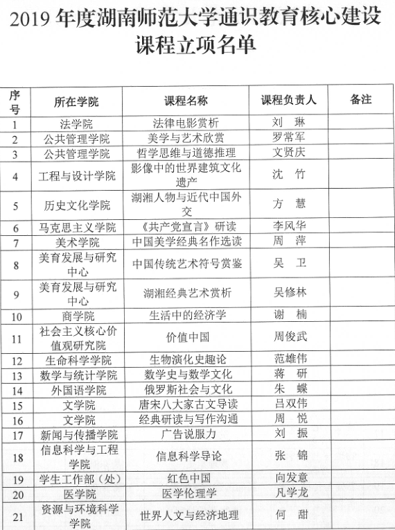 近期,在2019年度湖南师范大学线下一流建设课程立项评选中,经教师个人申报、各单位推荐、学校评审等多个环节,我院彭泽润老师的《语言学概论》、岳凯华老师的《中国电影史》获得“思政课程”建设课程立项;吕双伟老师的《唐宋八大家古文导读》、周悦老师的《经典研读与写作沟通》获得通识教育核心建设课程立项;蔡颂老师的《教师语言与演讲》、刘光成老师的《中文语文课程标准与教材研究》获得教师教育一流建设课程立项。