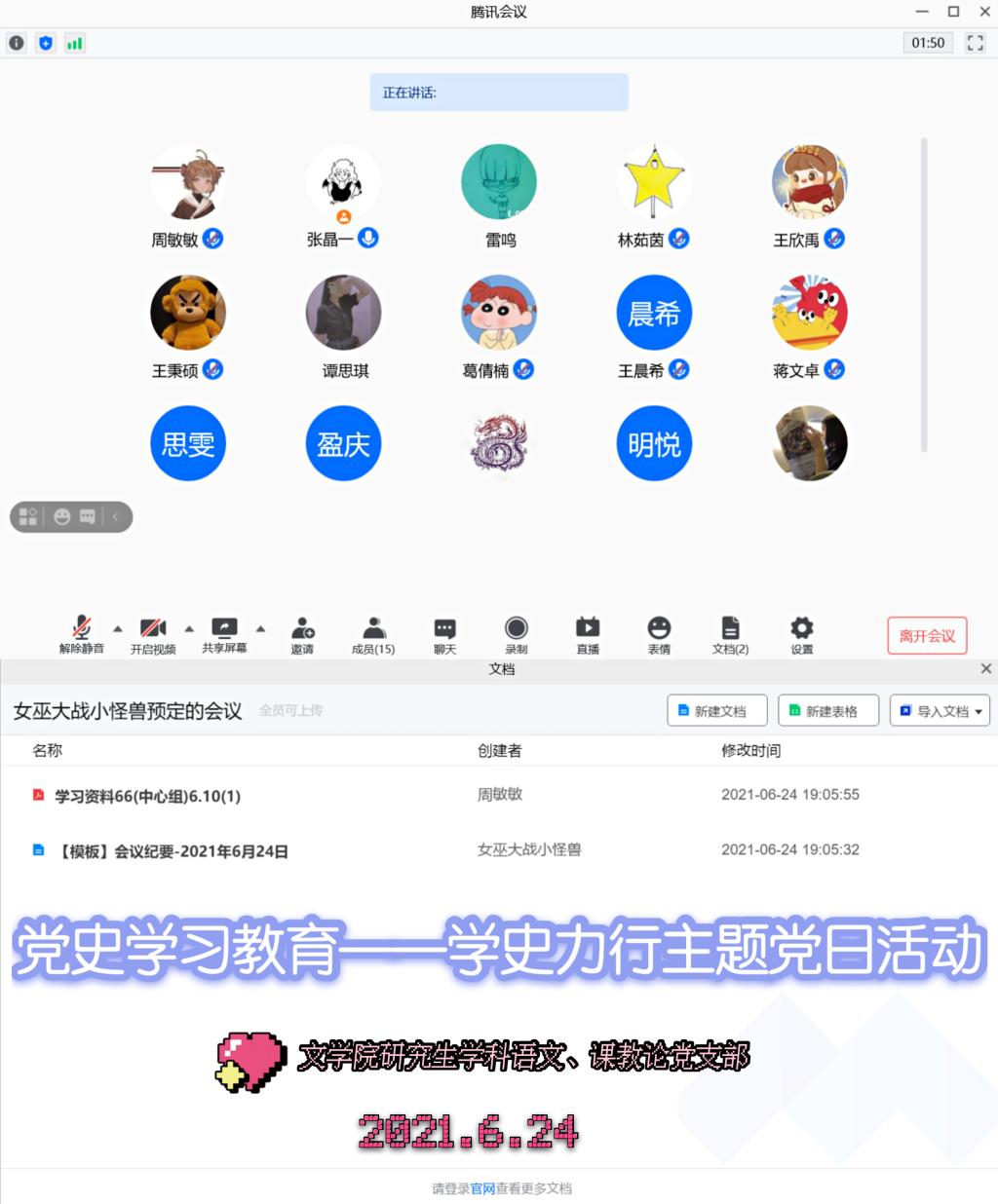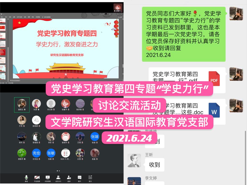 2021年6月24日下午,学院以支部为单位开展党史学习教育第四专题——“学史力行”学习讨论,重点学习了《在“学史力行”中彰显担当作为》,结合工作实际,全体党员均表示要知行合一,将学习教育的成果落实到行动上,尽职尽责,敢于担当和作为。