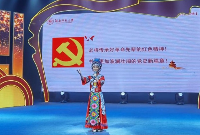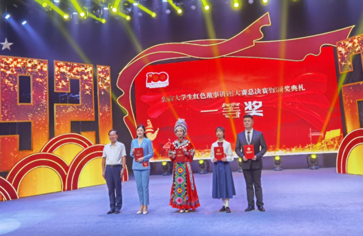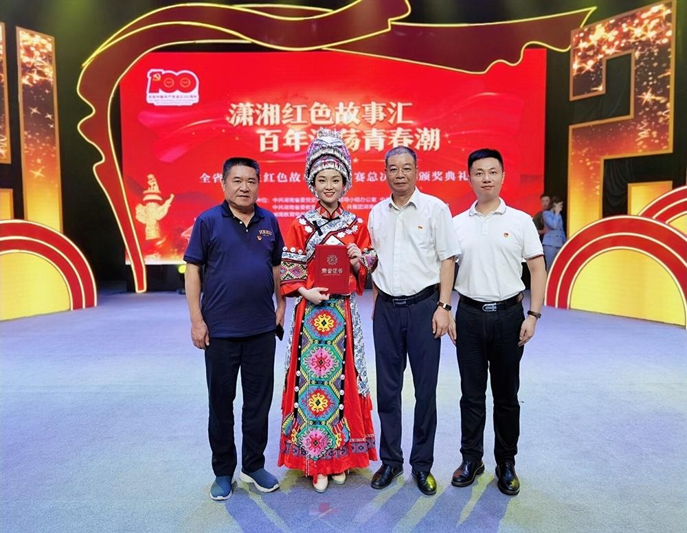 比赛现场,参赛选手们以湖湘革命先辈、开国将帅、英雄模范和在百年党史历程中具有重大影响的历史事件为基本素材,紧扣红色主题,从自身独特视角出发,讲述红色故事。我校五月天精品综合阁硕士研究生江静雪第一位出场,以《一首湘西民歌的家国情》为题,深情讲述了湘西土家民歌《马桑树儿搭灯台》背后集思想性、故事性、教育性于一体的红色故事,生动诠释了在百年党史中中国共产党员的初心使命与家国情怀,感动了在场所有评委与观众,最终荣获全省最高奖。