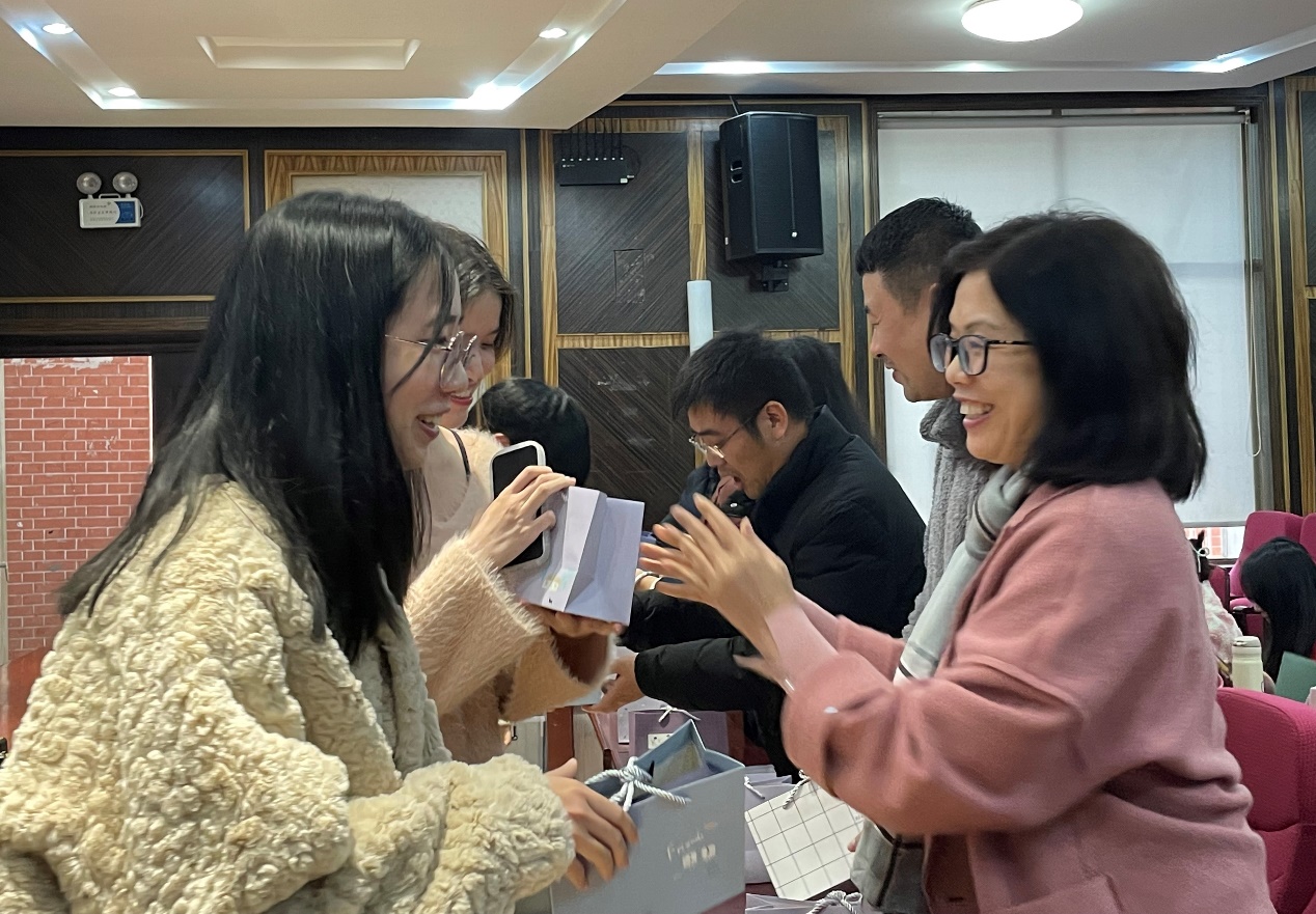 五月天精品综合阁为考研备考生们准备了福袋,福袋内有锦鲤护体小福袋、考研必胜钥匙扣和金榜题名水性笔等礼物,饱含学院祝福寓意。全体班导师向与会考生发放福利袋礼物,并表达对考生们的祝福与期望。