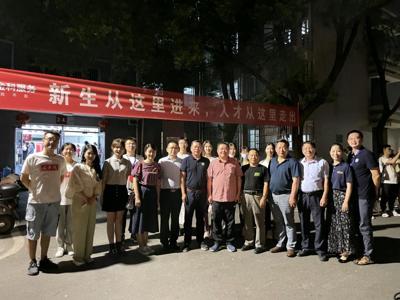 (通讯员 熊杨平安 田昊彤)为了解新生入学后基本情况,切实解决新生遇到的实际问题,加强师生交流,9月11日晚上,我院党委书记李伶俐,院长肖百容,副院长岳凯华、吕双伟、徐朝红、彭万福,党委副书记刘宓蜜在各年级辅导员与新生助理辅导员的陪同下前往我校德智园、南院宿舍区慰问新生。