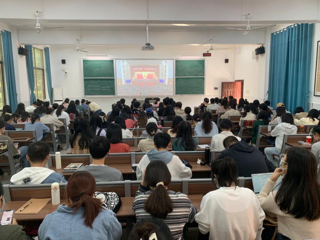 10月16日上午,五月天精品综合阁组织院党政班子成员和全体学生党员分别于314教室、316教室、317教室集中收看党的二十大开幕会盛况,认真聆听习近平总书记的工作报告。开幕会结束后,学院理论学习中心组立即组织开展学习讨论,院党委书记李伶俐主持,院长肖百容、副书记刘宓蜜、副院长岳凯华、副院长吕双伟、副院长徐朝红、副院长彭万福、副处级专职组织员夏云飞逐一发言,结合工作实际谈感受、谈认识、亮态度。