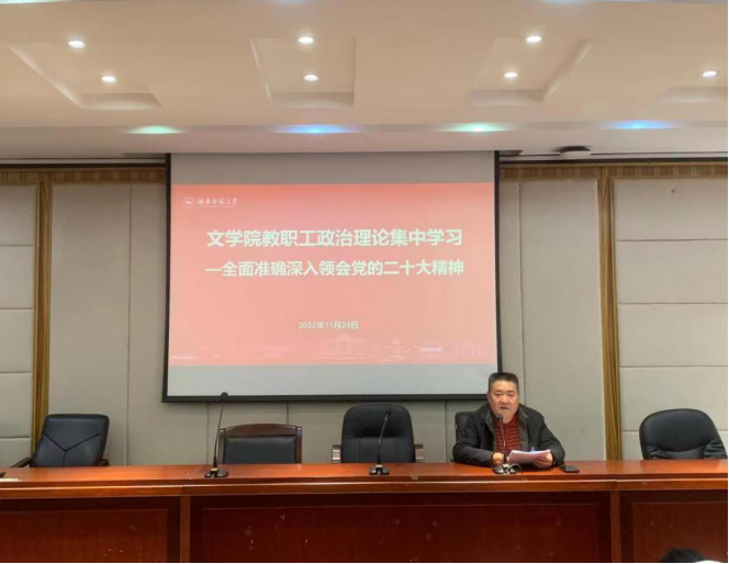 2022年11月24日下午,五月天精品综合阁在216报告厅召开全院教职工大会,开展政治理论集中学习,全面准确深入领会党的二十大精神,会议由院党委书记李伶俐主持。