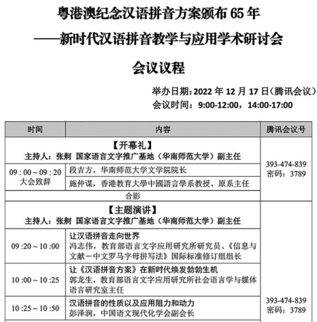 (通讯员:朱淑琪)2022年12月17日,由华南师范大学主办的“粤港澳纪念汉语拼音方案颁布65年——新时代汉语拼音教学与应用学术研讨会”在线下和线上同步召开。中国语文现代化学会副会长、湖南师范大学博士生导师彭泽润教授应邀出席,并且做了《汉语拼音的性质以及应用阻力和动力》的大会主题报告。彭泽润教授在演讲中回顾了卢戆章、赵元任、周有光、冯志伟等语言学家的贡献,论述了汉语拼音服务国家通用语言在拼写和注音功能上的法定地位。他希望小学语文拼音教学,应该在注音功能的基础上,增加拼写功能的教学,执行国家标准《汉语拼音正词法》。他表示,现在汉语拼音在信息高度道路上,在国际汉语教育舞台上,发挥着无穷的威力,形势喜人。彭泽润教授的演讲得到了与会者的高度评价。