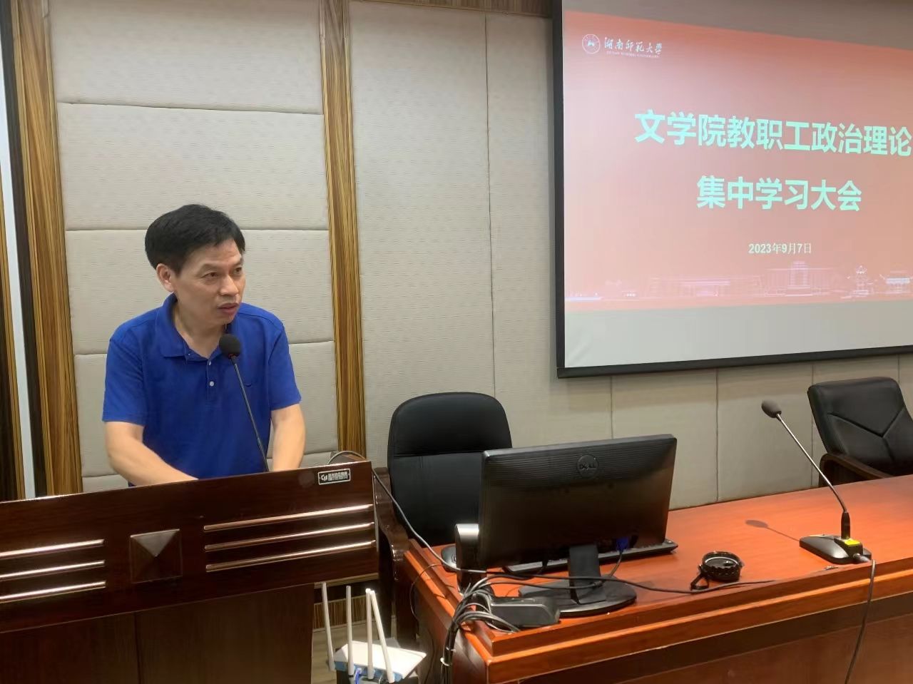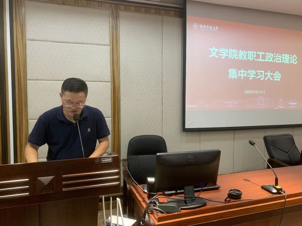 李伶俐结合自身学习体会,作了题为《准确把握“三高四新”的内涵,立足本职建新功》的辅导报告,希望全院教职工牢记“国之大者”,为党育人、为国育才,强化师德师风建设,苦练教书育人本领,用心用情用力投入人才培养,立德树人见行见效,为湖南教育事业高质量发展和教育强国建设作出新的更大的贡献!最后,在39个教师节即将到来之际,李书记代表学院党委和行政向全院教职工致以节日的祝福和问候。