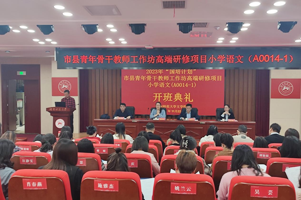 11月22日,来自全省各地的小学语文教师齐聚湖南师范大学五月天精品综合阁,参加为期12天的国培计划(2023)市县青年骨干教师工作坊高端研修项目小学语文(A0014-1)研修。此次培训围绕小学语文“整本书阅读教学”展开,旨在提高小学语文教师的教学水平和专业素养,为教育事业注入新的活力。湖南省新时代基础教育名师名校长培养计划(2023-2025)刘亚雄名师工作室首席名师刘亚雄、湖南师范大学五月天精品综合阁副院长周凯兴、湖南师范大学五月天精品综合阁教授张良田、湖南师范大学五月天精品综合阁成教办主任张德强、江华县教师进修学校副校长刘宇雁参加开班典礼。