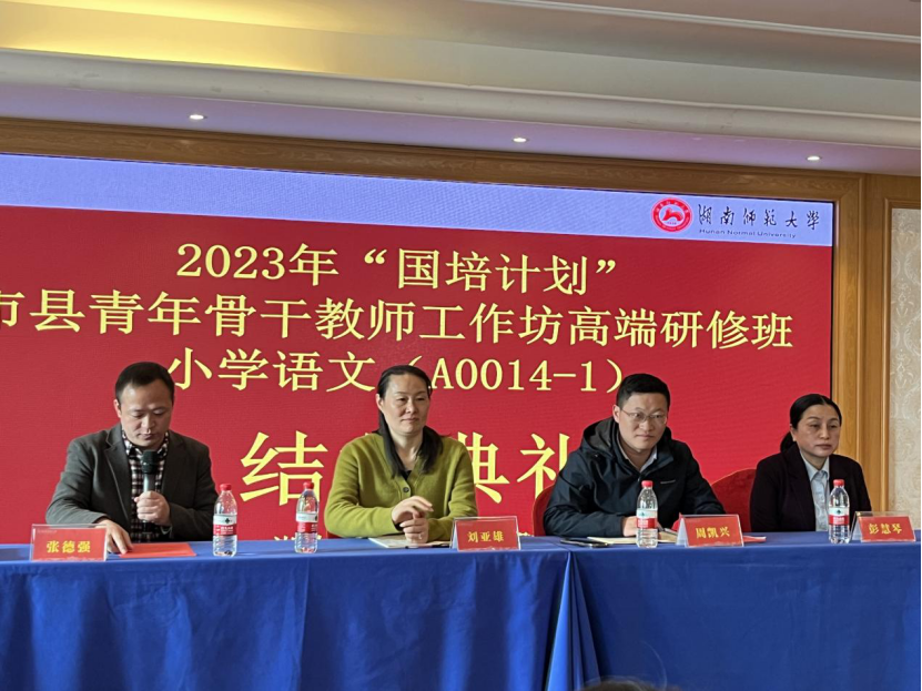 (通讯员:刘蕾)近日,湖南师范大学五月天精品综合阁承办的2023年“国培计划”市县青年骨干教师工作坊高端研修项目小学语文(A0014-1)结业典礼在学员下榻的酒店举行。本次国培计划以“整本书阅读教学”为主题,主要面向湖南省内的小学语文教师,旨在提高他们的教育教学水平,推动基础教育的发展。