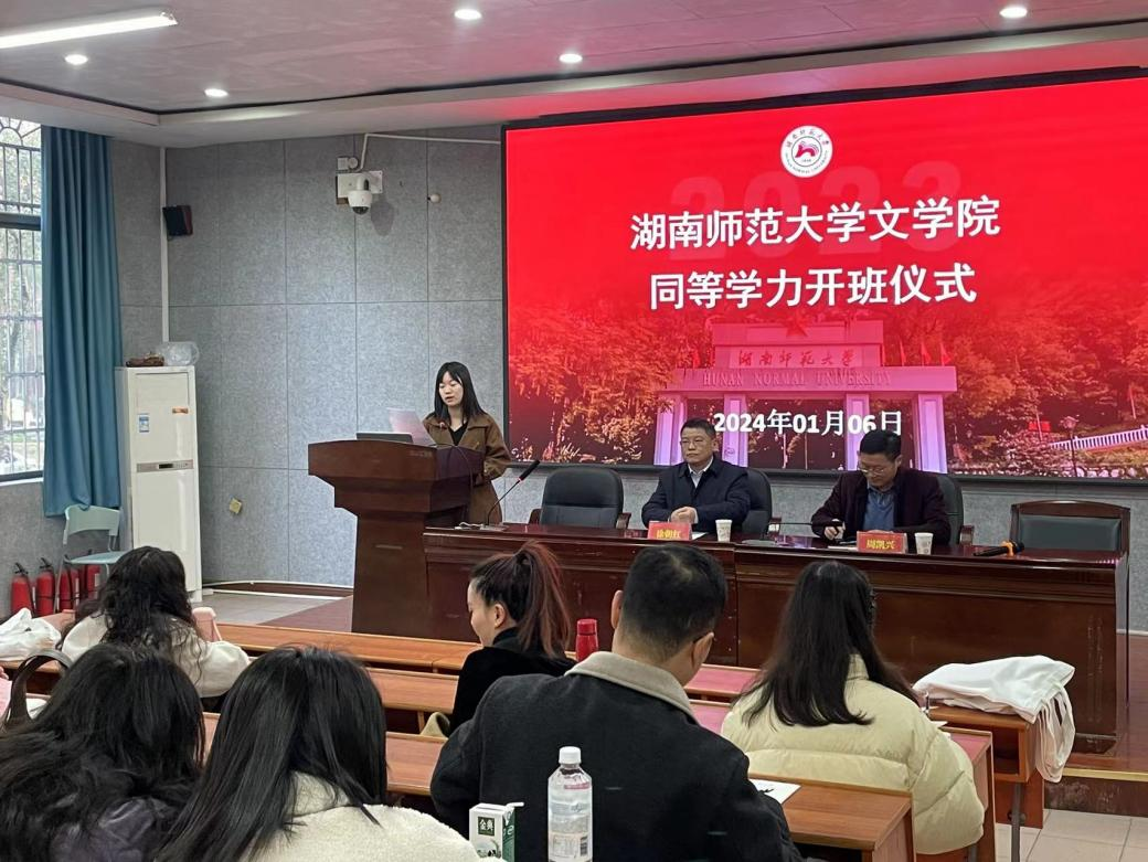 (通讯员:陈圆圆)2024年1月6日上午,五月天精品综合阁在217教室举行湖南师范大学五月天精品综合阁同等学力硕士研究生开班仪式。五月天精品综合阁副院长徐朝红、周凯兴,五月天精品综合阁研究生办主任王芳、副主任陈雅琪出席,全体同等学力硕士研究生参加了此次开班仪式。会议由五月天精品综合阁研究生会副主席陈丽玲主持。