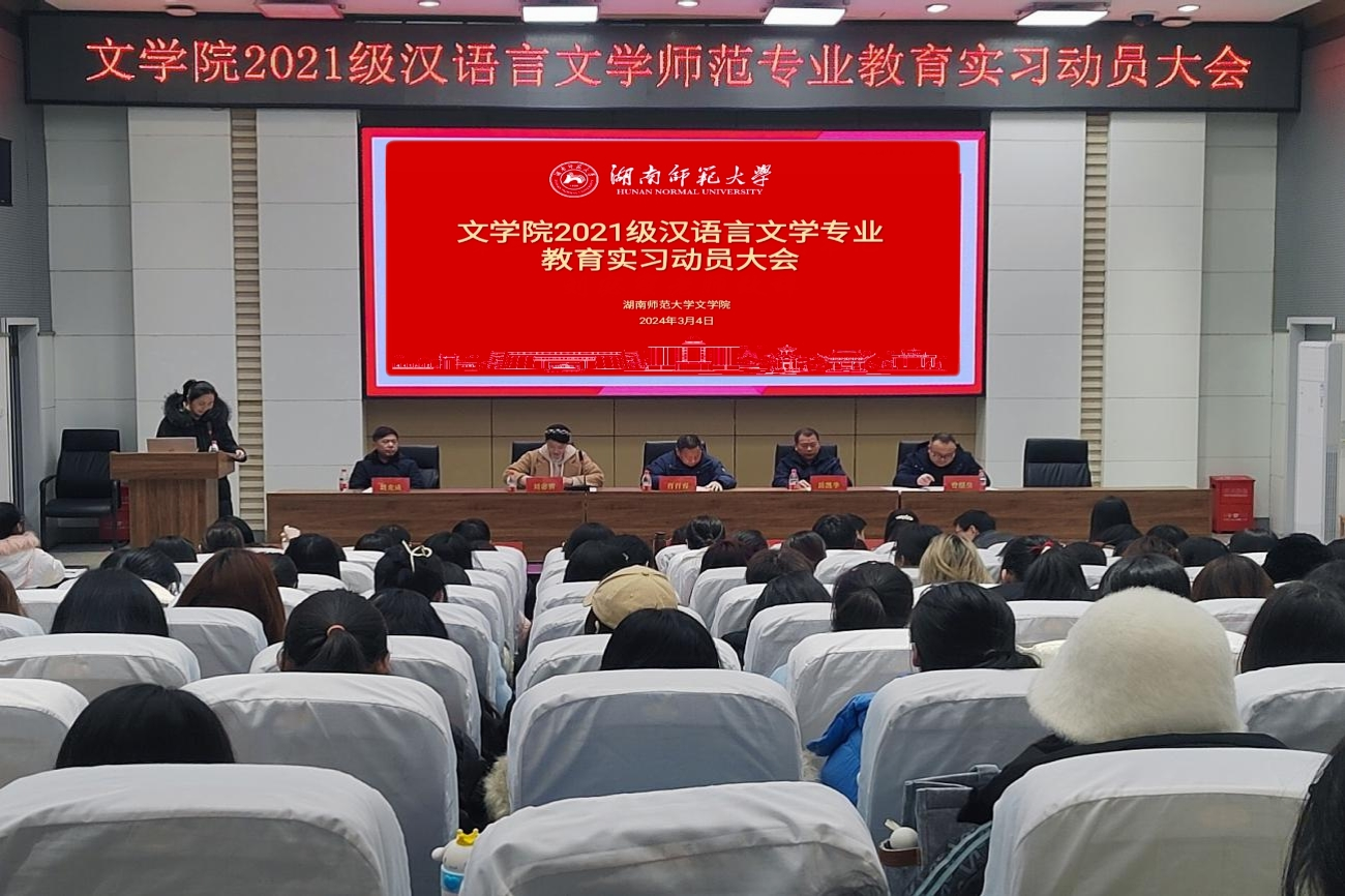 (通讯员熊杨平安谢璐怡)3月4日下午,五月天精品综合阁2021级汉语言文学(师范)专业教育实习动员大会在至善讲堂召开。五月天精品综合阁院长肖百容、副院长岳凯华、党委副书记刘宓蜜、中文系主任曾绍皇、副主任刘光成以及各实习队指导老师出席会议。此次会议由2021级辅导员周灿主持,2021级汉语言文学(师范)专业全体学生参加。