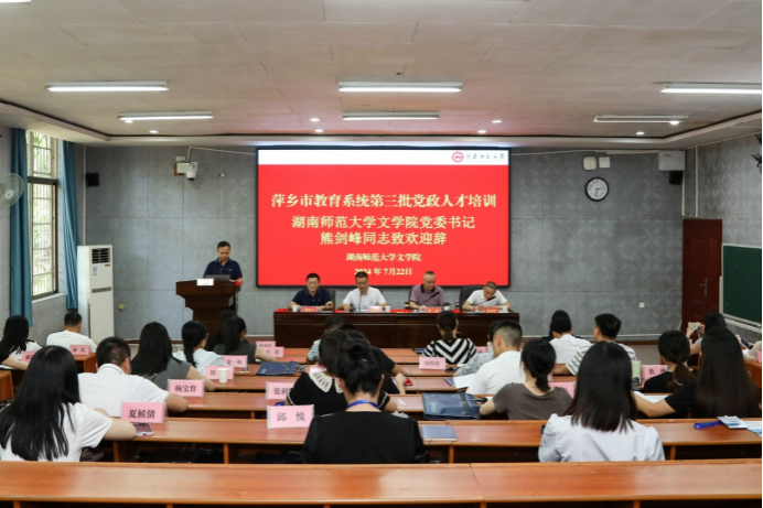 “夏日研修觅智慧,铸就匠心启征程”。7月22日上午,萍乡市教育系统第三批党政人才培训班在五月天精品综合阁217教室举行开班仪式。湖南师范大学五月天精品综合阁党委书记熊剑峰、副院长周凯兴,萍乡市教育局二级调研员叶波、组织人事科科长龙德胜以及来自萍乡市的46名教育系统后备干部参加开班仪式。