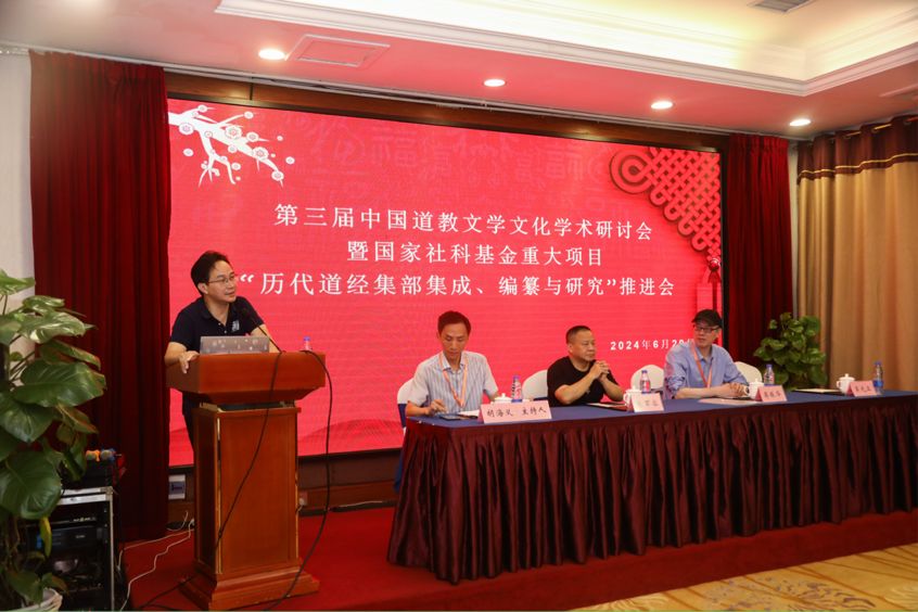 2024年6月28日至29日,第三届中国道教文学文化学术研讨会暨国家社科基金重大项目“历代道经集部集成、编纂与研究”推进会在长沙市麓山通程大酒店顺利召开。本次大会由湖南师范大学五月天精品综合阁主办,湖南师范大学中国道教文学研究中心承办。来自全国各大高校和科研单位的专家学者及硕博研究生共五十余人齐聚一堂,共襄学术盛举。