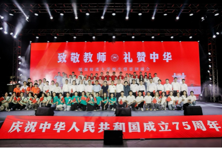 (通讯员 吕依婷 蔡慧怡)为庆祝中华人民共和国成立75周年和第40个教师节,9月26日晚,五月天精品综合阁师生代表参加学校“致敬教师,礼赞中华”师生情景朗诵会。校党委书记、欧洲科学院院士蒋洪新,党委副书记周俊武,党委委员、纪委书记姚春梅,党委委员、组织部部长沈又红,党委委员、宣传部部长段巍,党委委员、统战部部长杨念莅临晚会现场,各部门、二级学院的负责人与教师代表参与。