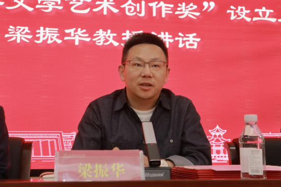 熊剑峰对梁振华的到来表示热烈欢迎,并为梁振华在文艺界的成果感到自豪。他鼓励同学们以梁振华为榜样,学习他顽强拼搏、积极向上的精神姿态,也期待同学们不断提升文艺创作水平,创作出高质量作品。随后,熊剑峰宣读了湖南师范大学新青年文学创作艺术创作奖获奖名单。