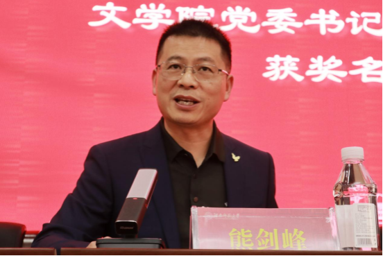 图为熊剑峰宣读湖南师范大学“新青年文学创作艺术创作奖”获奖名单