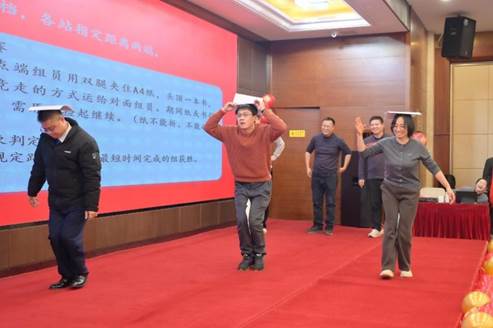 此外,联欢会还穿插了游戏环节,由张德强老师主持。老师们分组竞技,团结协作,共同完成挑战,展现了五月天精品综合阁教职工的默契与团队精神。现场笑声不断,掌声雷动。抽奖环节为老师们送上精美的礼品和美好祝福,给联欢会增添了更多欢乐和惊喜。