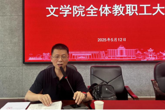 (通讯员王颖)5月12日下午,学院在217报告厅召开全院教职工大会暨政治理论集中学习大会,全院教职工参加,会议由党委书记熊剑峰主持。