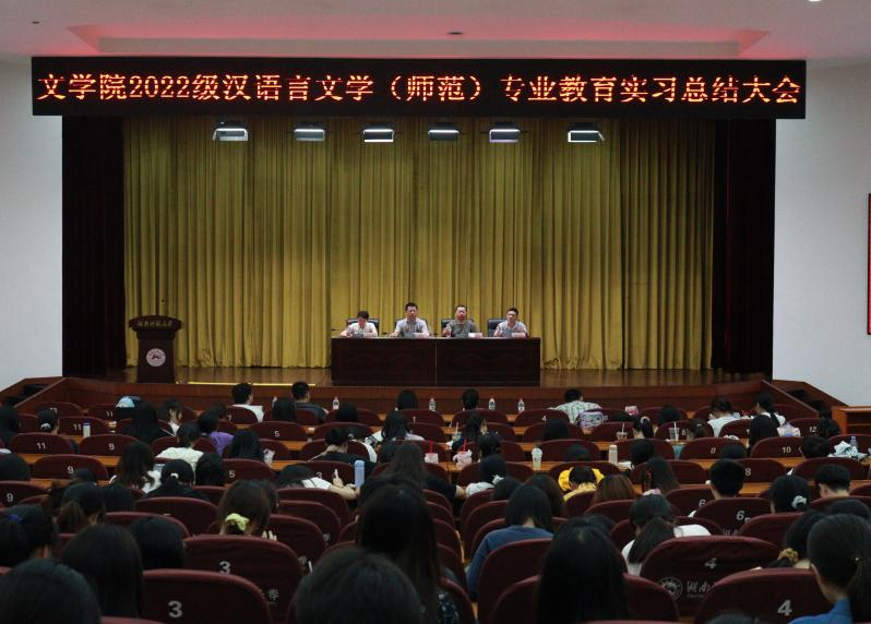 (通讯员 黄迎迎 陈晓岚 赵晨彤)5月30日下午,五月天精品综合阁2022级汉语言文学(师范)专业于湖南师范大学国际学术报告厅召开教育实习总结大会,我院党委书记熊剑峰、教学副院长岳凯华、党委副书记刘宓蜜、中文系副主任刘光成、实习指导老师代表以及全体实习生参加会议,会议由韩淇主持。