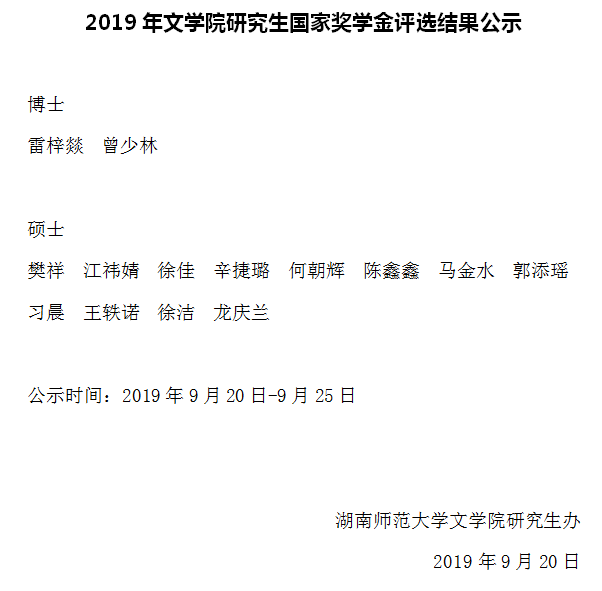 2019年五月天精品综合阁研究生国家奖学金评选结果公示