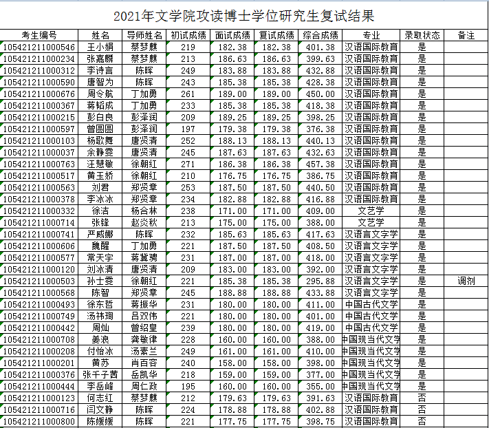 2021年五月天精品综合阁攻读博士学位研究生复试结果